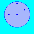 Oben im Bild sind drei ´ruhende´ Ätherpunkte markiert, die ortsfest im Raum steht. Die Verbindungslinie zwischen den oberen und unteren Ätherpunkten repräsentieren alle benachbarten Ätherpunkte auf diesen Linien. Wenn die unteren Ätherpunkte jeweils eine Kreisbahn beschreiben, bewegen sich alle Ätherpunkte auf diesen Linien ebenfalls auf einer Kreisbahn. Nach oben erfolgt das Schwingen jeweils an einem kürzeren Radius. Die Intensität des Schwingens wird also von unten nach oben geringer. Dennoch behalten hierbei alle beteiligten Ätherpunkte zueinander immer den gleichen Abstand (wie im lückenlosen Äther unabdingbar ist).