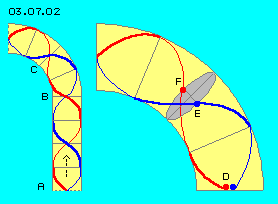 At earlier chapter ´Overlays´ was mentioned e.g. by picture 03.02.03 which variety of movement pattern can results from the overlaying of only two circled motions, only by varying turning speeds or turning directions and radius.
