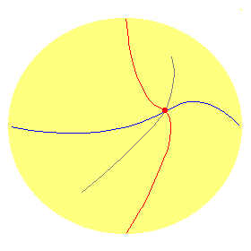 At C the red point moves to right side, now also the Free Aether momentary moves into likely direction. Also here comes up ´stress´, because the connecting line wants to move further to right side than Free Aether allows. Also here the connecting line further inside must avoid the conflict by swerving out (marked by blue arrow showing upwards).