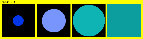 Als allein absolut sicherer Ausgangsbasis aller Überlegungen traf ich z.B. die Aussage: es ist Etwas (in Bild 04.01.05 durch die blaue Kreisfläche symbolisiert). Der Gegensatz zu Etwas (das real existiert) ist das Nichts (nichts existiert), hier symbolisiert durch die ´Nicht-Farbe´ schwarz. Für mich ist logisch, dass ein Nichts jegliche Existenz ausschließt - aber ich hatte viele Diskussionen darüber, was ´reale Existenz´ sei - und ob das Nichts nicht nur relativ-nichts sein könne - eben so wie man den ´Raum des Alls´ als ´Vakuum´ zu bezeichnen pflegt - als Leere, die doch nicht ganz leer ist - also begrifflich auf der logischen Ebene von ´ein bisschen schwanger´ sich bewegt.