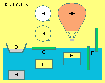 We are steady exposed to the atmospheric pressure. However we merely register it´s weighting with about 100000 N/m^2, so corresponding to a water-pile of ten meter. The airs seams light, however the buoyancy is working like at the water. A balloon (G) filled up with air is nearby as heavy like the displaced air and is gliding around anyhow. A balloon (H) filled up with a light gas will rise up.