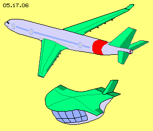 The internal installed bowl-engines replace the external jet-engines, so the air-resistance will be reduced (see picture 05.17.06). The performance of the bowl-engines is constant at all heights. The new engine is much lighter and easier to build with corresponding advantages of costs and for maintenance. Last but not least, these airplanes are silent like gliders.